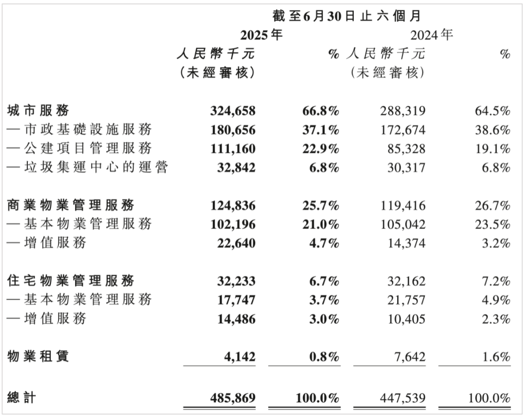 其中城市服务板块为主要收入来源,今年上半年贡献营收3.25亿元,同比增长12.6%,占总收入的66.8%。但由于“镇江道路保洁项目撤盘,新增项目毛利低”,期内城市服务毛利同比下滑约6.3%,毛利率同比减少3.3个百分点。